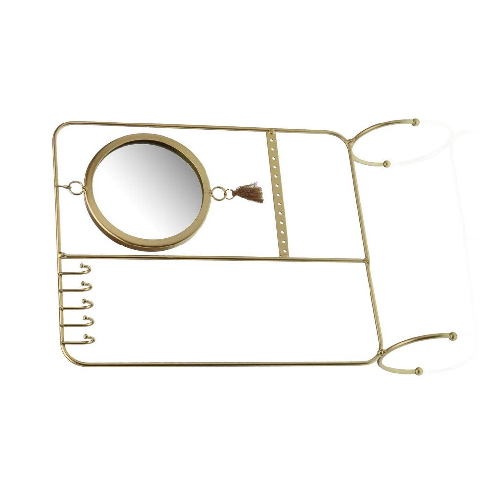 Original colgador de joyas con espejo, con 1 espejo, 5 ganchos para colgar y 13 agujeros. Referencia: 20931078 Largo: 25 cm. Ancho: 9.5 cm. Alto: 35.5 cm. Material: Metal Packaging: BOLSA PLÁSTICO Info: 0.34167 kg.