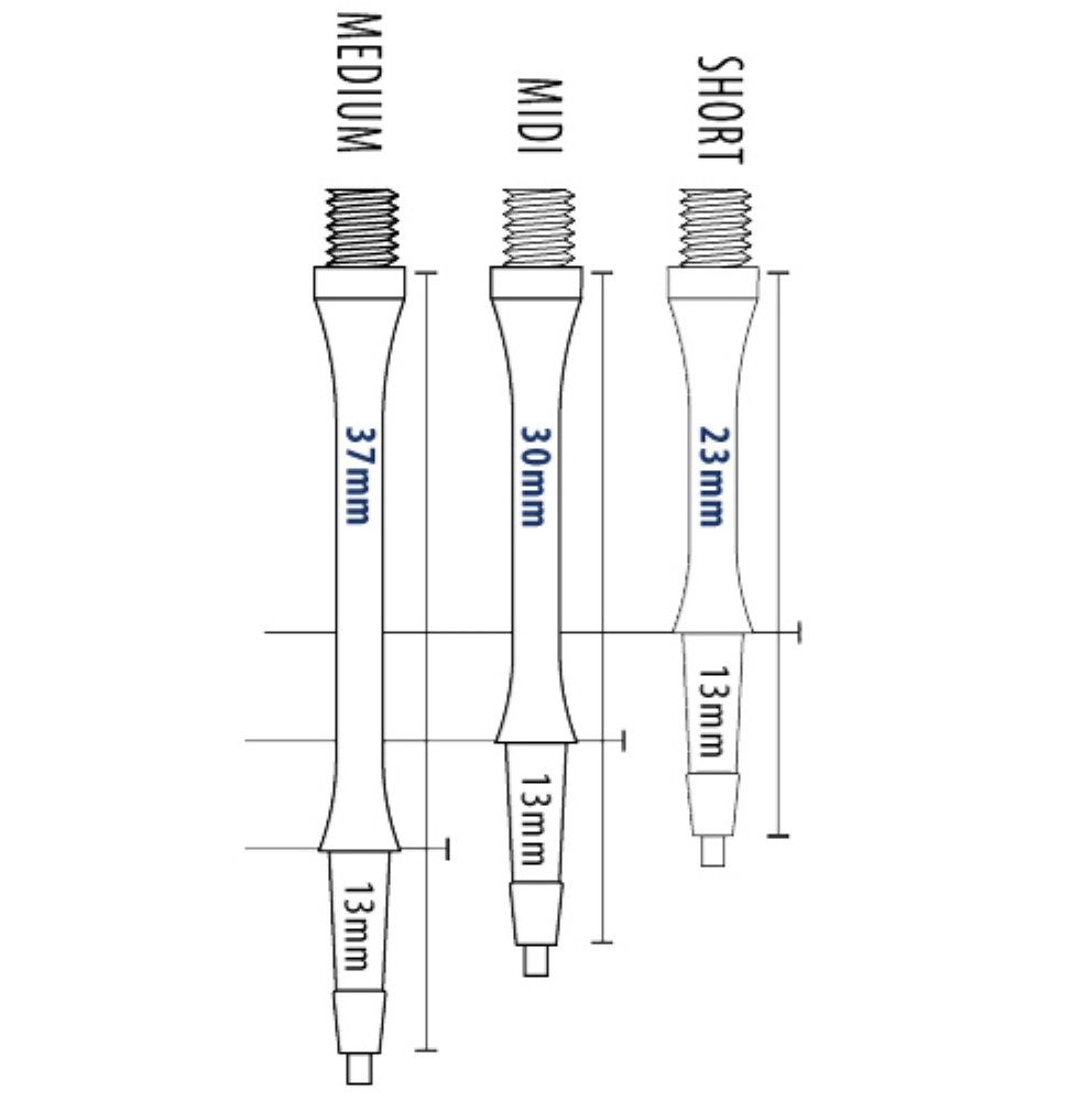 Construido a partir de un nuevo material unico, el policarbonato, esta caña permite que el Pluma Clic pueda girar 360 ° grados que ayuda a eliminar las salidas de rebote, pero también permite un mayor acercamiento y una mayor Puntería para una buena puntuación. La construcción ha sido diseñada para dar a esta caña de 17 ° grado de flexión longitudinal para reducir la desviación de la caña. Cantidad: 3 Unidades Material: Policarbonato Fabricado por: Harrows Darts