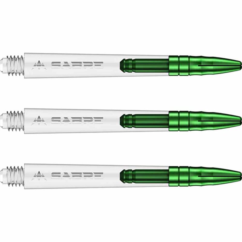 Marca: Mission Darts. Modelo: Sabre. Color: Verde Transparente. Material: Policarbonato y punta de aluminio. Medida : Larga 48mm. . El producto se compone por 1 set de 3 cañas de la marca Mission Darts modelo Sabre.