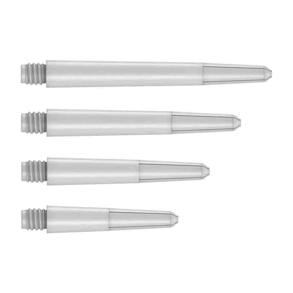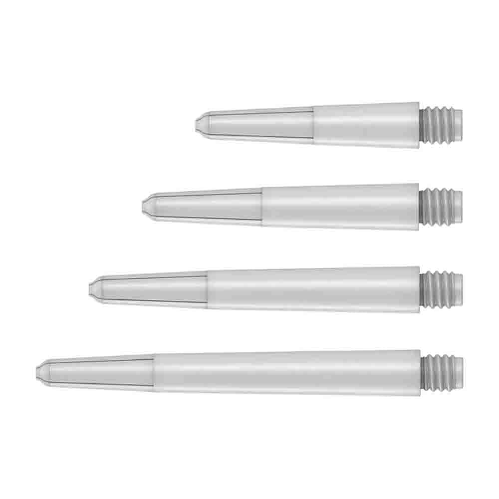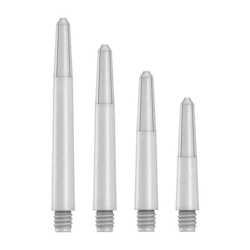 Cañas de dardos fabricadas en nylon resistente.. . Longitud: Ex-Short – Extra corta 35mm sin contar la rosca. Color: Blanco nieve. Contenido: 3 Cañas . Material: Nylon