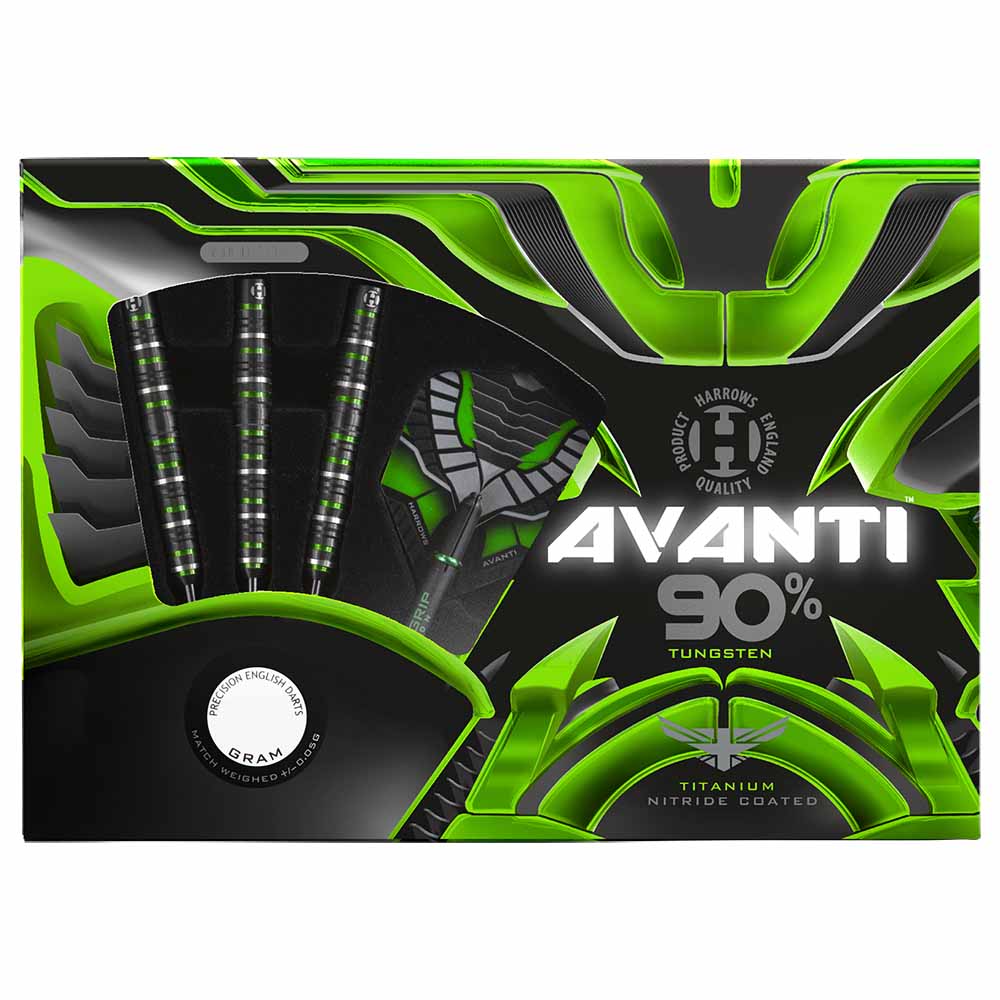 Dardos Harrows Avanti . El producto se compone por 1 set de 3 dardos completo. 90% tungsteno. 50mm largo. 7.55mm diámetro. Peso 25 gramos. Los dardos Harrows Darts son dardos de gran calidad fabricados en Reino Unido