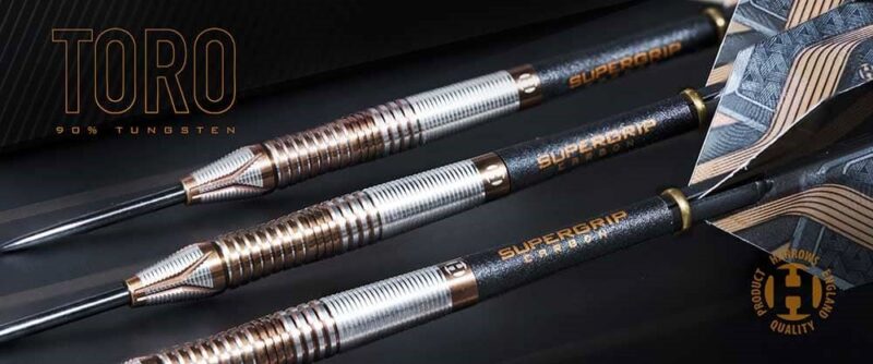 Dardos Harrows Darts Toro 90% 24gr. . Marca: Harrows Darts.. Modelo: Toro.. Peso: 24 gramos con precisión del 0.05g.. Material: 90% de tungsteno.. Medida del cuerpo: 7.1mm x 50mm.. . El dardos se compone por 1 set de 3 cuerpos Harrows Darts Toro, 1 set de 3 cañas Harrows SuperGrip Carbono y 1 set de 3 plumas Toro Harrows Darts.