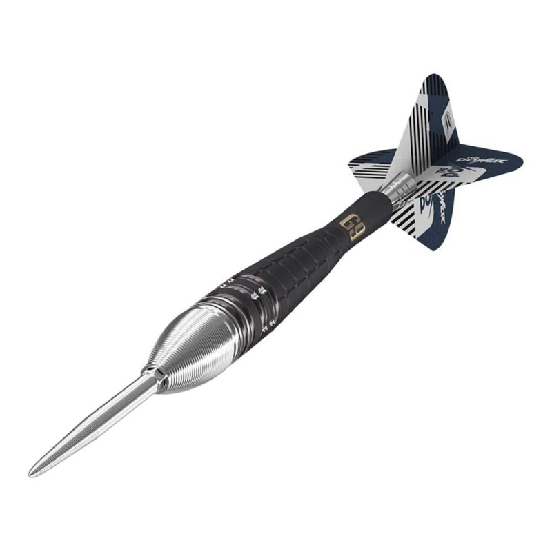 Dardos Target Phil Taylor Power Gen 9 SP 95% 24gr. . Marca: Target. Modelo: Phil Taylor Power Gen 9 SP. Longitud barril: 41.0mm. Diámetro barril: 7.65mm. Peso del barril: 24 Gr. Peso total: 25.5 Gr aprox. Material: 95% Tungsteno . Tipo de punta: 26mm Silver Nano Swiss Points, punta de metal reemplazable con rosca fina interior.. . El juego se compone por 1 set de 3 cuerpos de dardos Phil Taylor Power Gen 9 SP, 1 set de 3 cañas Gen9 Titanium cortas, 1 set de 3 plumas 9-Five Gen9 Vapor y 1 herramienta Swiss Point Tool que te permite cambiar las puntas más fácilmente.