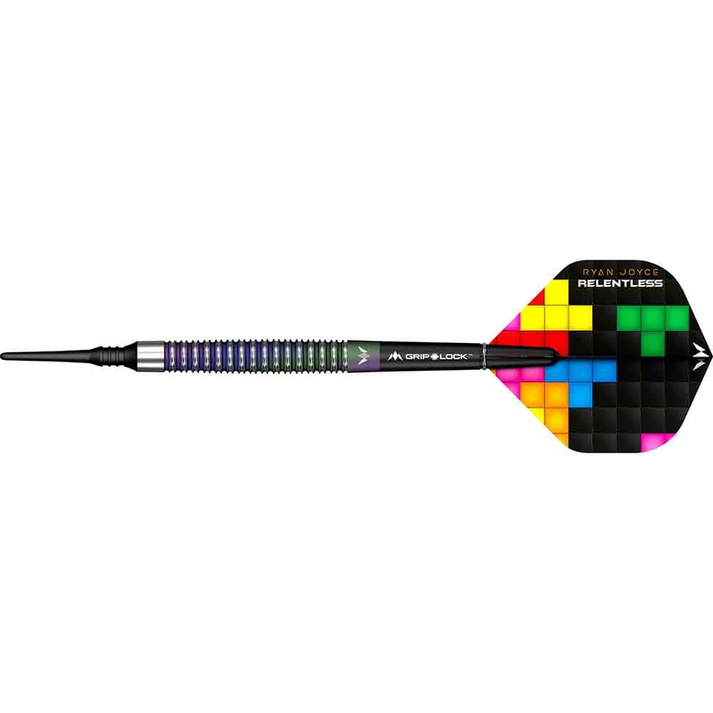 Marca: Mission. Modelo: Ryan Joyce. Serie: Relentless PVD Cora. Peso: 21g. Material: 95% Tungsteno. Diámetro: 6.63mm. Largo Barril: 49.3mm. . El juego de dardos se compone por 1 set de 3 cuerpos de dardos Mission , 1 set de 3 cañas, 1 set de 3 plumas y 1 set de 3 puntas.