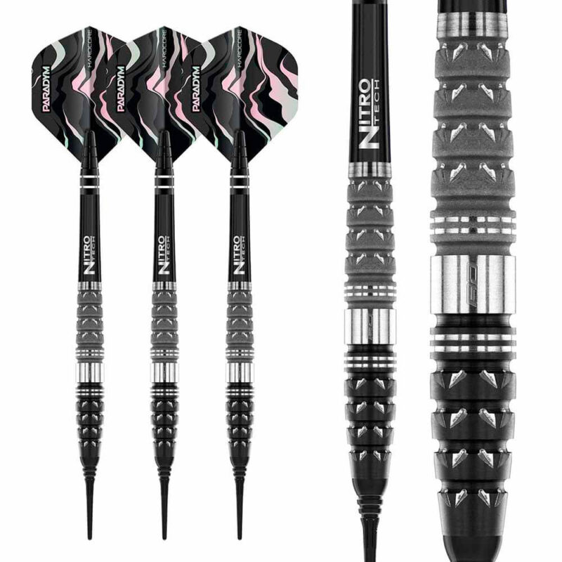 Marca: Red Dragon. Modalidad: Punta Plastico. Modelo: Paradym Torpedo. Rosca caña: 2BA. % Tungsteno: 90%. Diámetro cuerpo: 7.00mm. Longitud cuerpo: 45.7mm. Peso completo 20g con una precisión de +-0.1g. . El juego de dardos e compone por 1 set de 3 cuerpos Paradym Tapered, 1 set de 3 cañas y 1 set de 3 plumas Red Dragon.