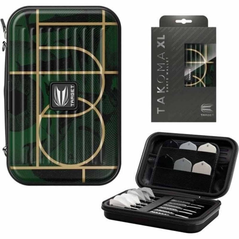 Marca: Target. Modelo: Takoma XL. Diseño: Cult XL Wallet. Medida exterior: 19 x 12 aprox. Medida interior: 17 x 11 aprox. . El producto se compone por 1 funda Takoma XL no incluye repuestos ni dardos es solo la funda